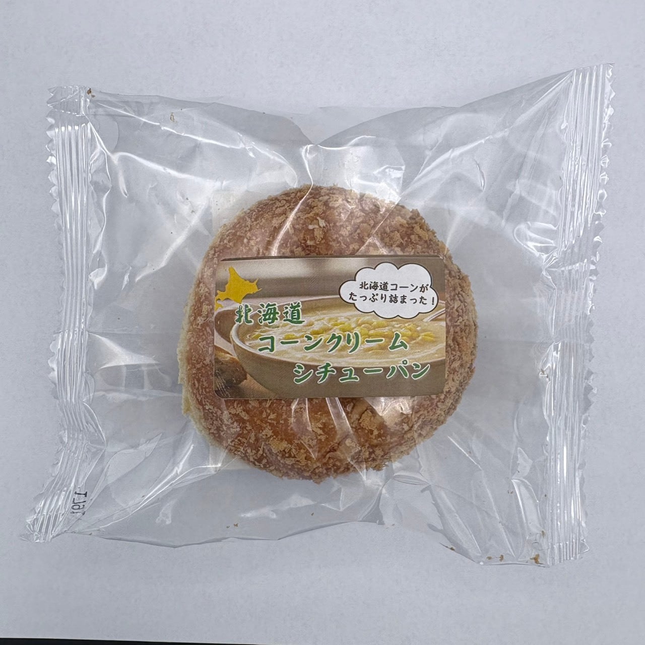 小麦粉(国内製造)、クリームシチューフィリング、スイートコーン、ショートニング、卵、マーガリン、グラニュー糖、牛乳、パン粉、発酵種、パン酵母、食塩/酢酸Na、調味料(核酸等)、乳化剤、増粘剤(キサンタンガム)、香料、ゲリシン、甘味料(ソルビート)、ビタミンC、着色料(カロチン)、(一部に小麦、乳成分、卵、大豆、豚肉、鶏肉、りんごを含む)